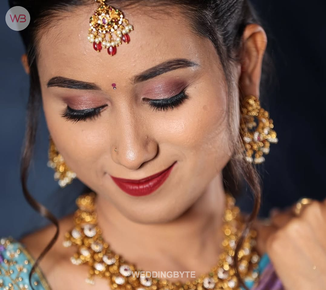 We are professional makeup artists. Bridal look is crafted by understanding the Bride’s skin type, texture and preference and we creates a look that is seamless and best suited for the occasion. When you look beautiful , you feel beautiful. Keeping in mind that all eyes are on the bride to be on her big day. We are known for the personal attention and the focus on the detailing for the perfect look of the bride. It will be our absolute pleasure to assist you in the best days of your life. Give us the privilege to for your Big day and we promise to make every moment special for you! #soouthindia#makeovers#bridal#looks#trendy#haldi#cocktail#groom#babyshower#prewedding#shoot #dewymakeup##smokey#shades#looks waterproof#makeuplook#fashionshows#photoshoot#hdlook#makeupartist #makeover # Bridal Makeup Artist , # bridal makeup , # wedding makeup, # Engagement Makeup , # wedding makeup artist , # bridal hair and makeup , # best bridal makeup